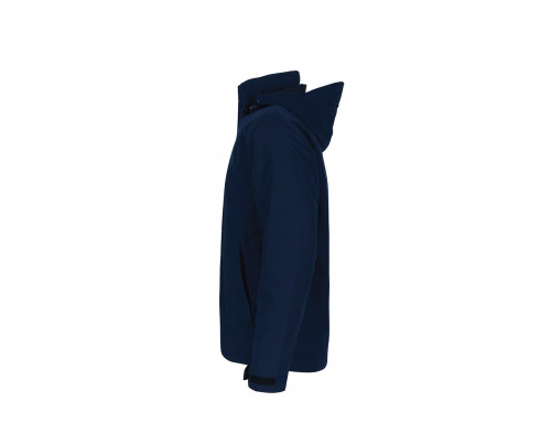 Atmungsaktive, wasser- und winddichte 3-in-1-Kombijacke mit getapten Nähten, separat tragbarer, wärmender Fleece-Innenjacke in Schwarz (bei Außenjacke in Farbe Tinte, Fleece-Innenjacke in Tinte). Abnehmbare Kapuze mit Schild, im Kragen verstaubar. Kapuze und Saumabschluss mit Tunnelkordelzug und Stoppern in der Weite verstellbar. Hochwertiger 2-Wege-Frontreißverschluss mit doppelter Windstop-Patte, Innentasche, zwei praktische Außentaschen mit Reißverschluss, weitenverstellbare Ärmelbündchen mit Klettverschluss zum stufenlosen Regulieren. Fleece-Innenjacke mit seitlichen Einschubtaschen, gefütterten Ärmeln, weitenverstellbarem Bund mit Tunnelkordelzug und Stoppern. Alle Reißverschlüsse von YKK®. Hergestellt aus strapazierfähigem wasser- und winddichtem Obermaterial aus 2-Lagen-Laminat mit TRIACTIVE®PRO-Technologie für maximale und zuverlässige Wasserdichtigkeit. Gewebtes HAKRO-Necklabel aus hochwertigem Kettsatin mit weichen, ultraschallgeschnittenen Bandkanten für höchsten Tragekomfort und gewebtes HAKRO-Flaglabel an der linken Seitennaht.